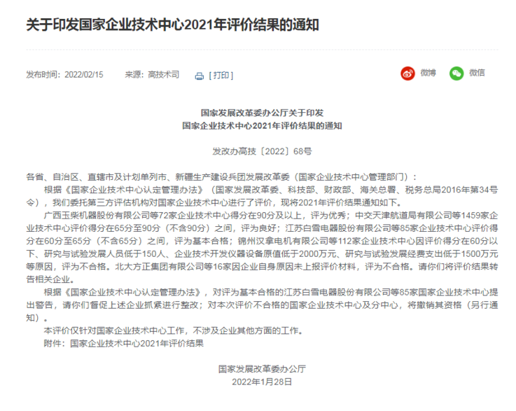 国家企业手艺中心2021年评价效果出炉