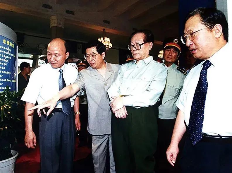 2000年7月,,,,,,,江泽民、胡锦涛等党和国家向导人在“国防军工协作配套展示会”上莅临南京玻纤院展台。。。。。。