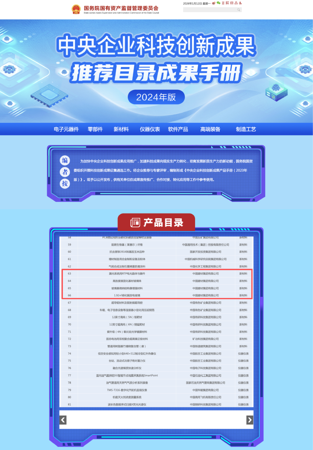 克日,,,,,国务院国资委印发《中央企业科技立异效果推荐目录(2024年版)》,,,,,收录电子元器件、零部件、新质料、仪器仪表等7个领域263项科技立异效果。。。。。。。6686体育 - 流通首播全球篮球足球热门赛事研发的4项新质料乐成入选推荐目录。。。。。。。