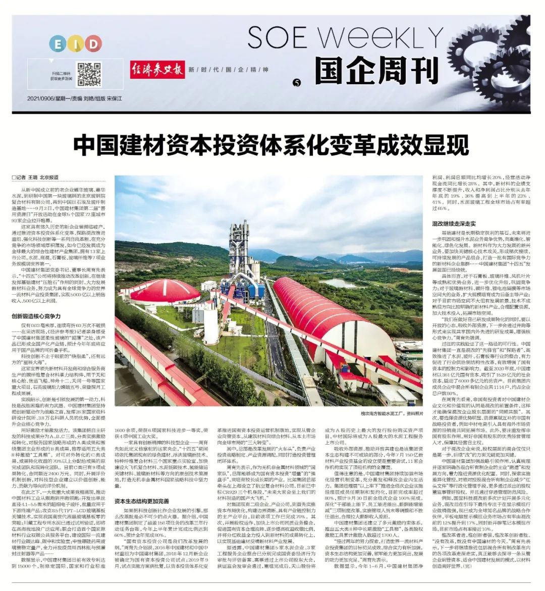 经济参考报专稿《6686体育 - 流通首播全球篮球足球热门赛事资源投资系统化厘革效果展现》着重报道了柔性玻璃、石英玻璃、碳纤维复合质料承力结构件等新质料产品应用于神舟十二号、天问一号等国家工程,,,,,,强调6686体育 - 流通首播全球篮球足球热门赛事集团正在运用强盛的科研能力,,,,,,立异铸造企业焦点竞争力。。。。。。。。同时,,,,,,一连增强市场化谋划机制厘革,,,,,,推进混淆所有制刷新,,,,,,探索从管企业到管资源、适合6686体育 - 流通首播全球篮球足球热门赛事生长的新模式。。。。。。。。
