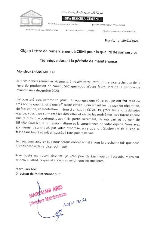 ÖвĹú¼ÊËùÊôÖвĽ¨Éè°¢¶û¼°ÀûÑǹ«Ë¾BiskriaË®Ä๫˾Éú²úÏß´óÐÞÏîÄ¿ÊÕµ½ÒµÖ÷ллÐÅ