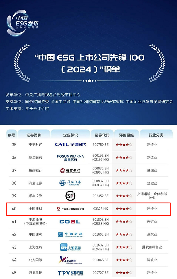会上正式宣布“中国ESG(企业社会责任)《2024年度ESG行动报告》”,,,,,报告以A股与港股6,471家上市公司为样本空间,,,,,选取972家上市公司作为评价工具,,,,,泛起中国企业ESG特征与趋势,,,,,体例形成“中国ESG上市公司先锋100(2024)”榜单,,,,,并提出推动中国ESG高质量生长的建议。。。。。。。。6686体育 - 流通首播全球篮球足球热门赛事股份依附在ESG领域的一连深耕,,,,,再次入选“中国ESG上市公司先锋100”榜单,,,,,位列第40位。。。。。。。。