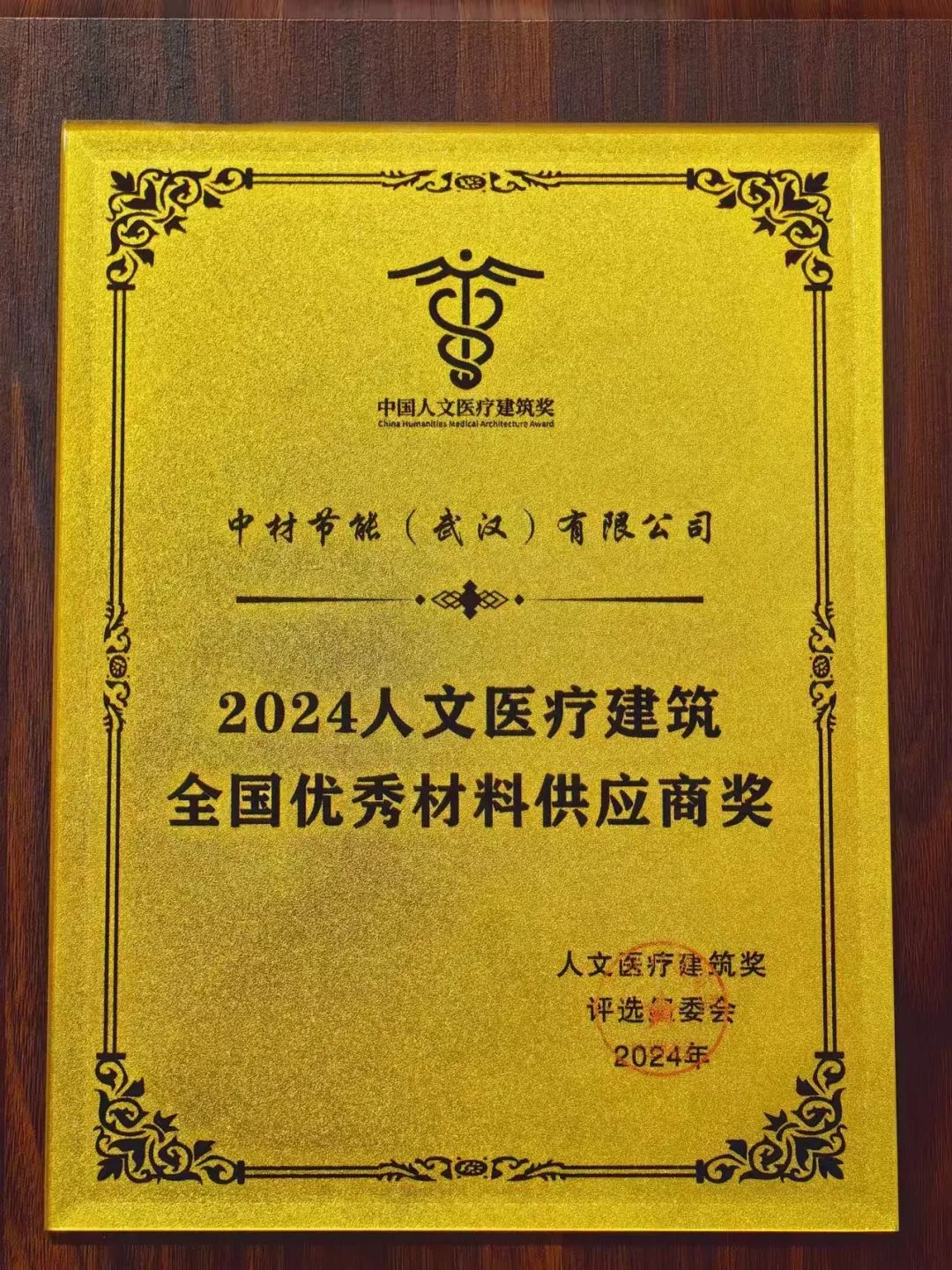 节能武汉荣获2024中国人文医疗修建天下优异质料供应商奖