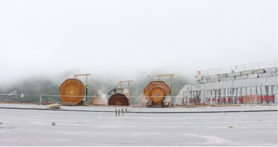 花岗岩荒料的开采方法为露天开采,,,,,,,接纳先进的圆盘锯锯切笔直面、绳锯机拖底开采工序。。。。。。。