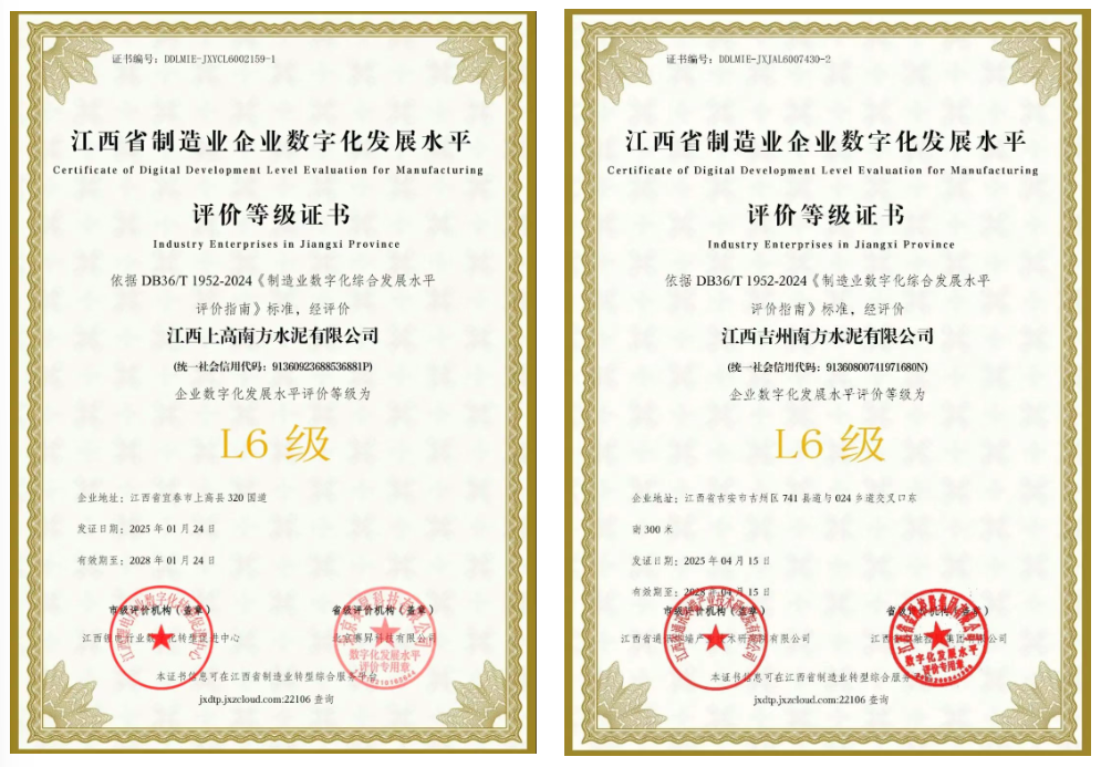 08¡¢½Î÷Ë®ÄàËùÊôÆóÒµ»ñ½Î÷Ê¡ÖÆÔìÒµÆóÒµÊý×Ö»¯Éú³¤Ë®Æ½ÈÏÖ¤¡¢2025Äê¶È½Î÷Ê¡ÏÈÉý¼¶ÖÇÄܹ¤³§