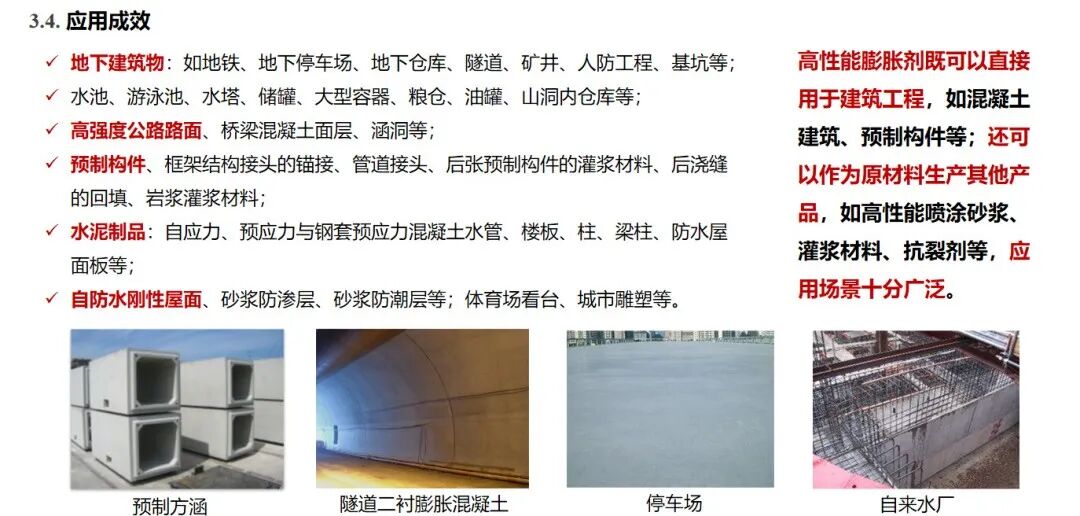 嘉华特水与日本电化株式会社配合研制的高性能膨胀剂(II型)是古板活性钙产品的一种衍生产品,,,,,,其工艺要求严酷,,,,,,产品具有节能、环保的特征,,,,,,属于绿色环保新质料。。。。。。。该产品应用场景普遍,,,,,,既能直接用于种种修建工程,,,,,,提升混凝土性能;;;;;;;又可作为焦点质料,,,,,,制备高性能抗裂产品。。。。。。。现在已乐成应用在隆汉高速隧道、成渝中线高铁、西渝高铁等海内路桥铁路工程项目中,,,,,,为包管工程质量与恒久清静运营施展了要害作用。。。。。。。