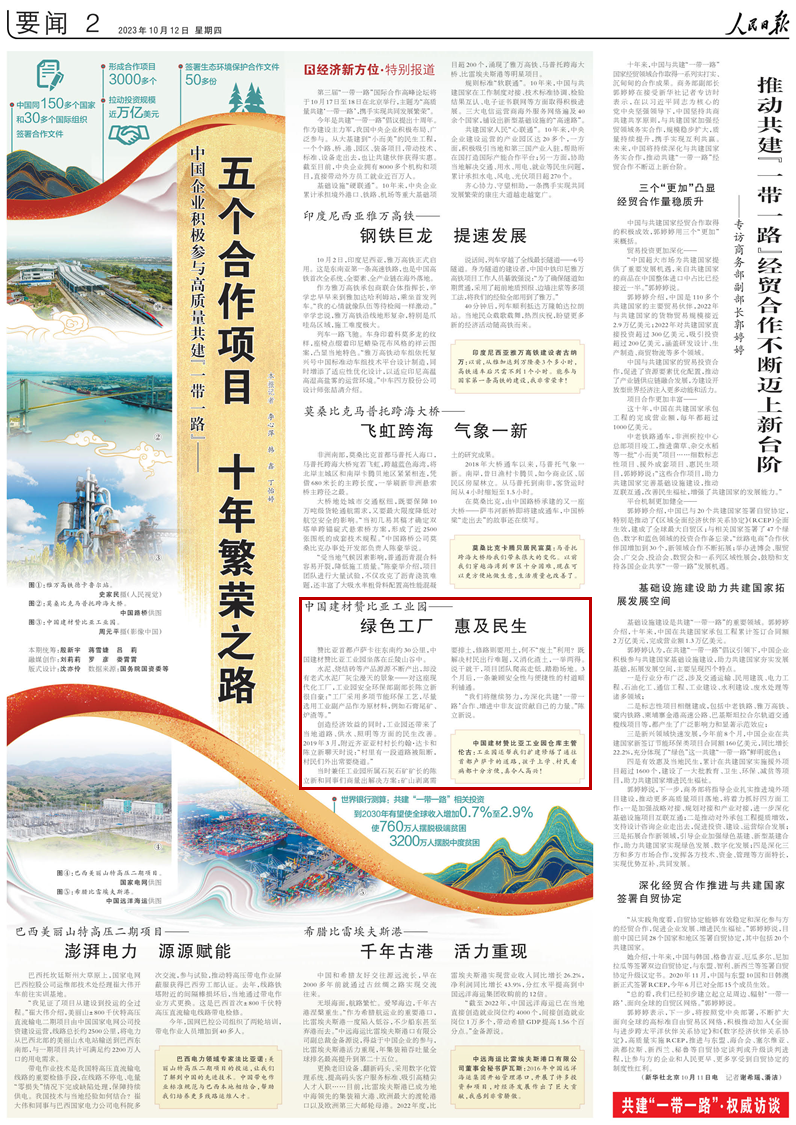 今年是共建“一带一起”建议提出十周年。。。。。。作为建设主力军,,,,,我国中央企业起劲结构、普遍加入。。。。。。从大基建到“小而美”的民生工程,,,,,一个个路、桥、港、园区、装备项目,,,,,发下手艺、标准、装备走出去,,,,,也让共建同伴获得实惠。。。。。。阻止现在,,,,,中央企业拥有8000多个机构和项目,,,,,直接发动外方员工就业近百万人。。。。。。