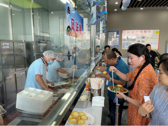 职工在新建的职工餐厅排队就餐,,,, ,,吃着热气腾腾的适口饭菜,,,, ,,各人赞一直口,,,, ,,“吃了这么久的外卖,,,, ,,终于有了自己的食堂了,,,, ,,感受这一餐特香,,,, ,,谢谢苏非院”、“现在我们再也不必为忘了订盒饭而忧愁了”、“饭菜很是富厚,,,, ,,谢谢党委。。。。。。。”