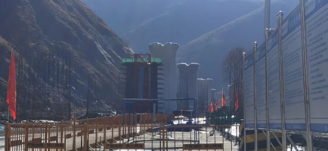 川藏线瓦泽1号特大桥桥墩施工现场