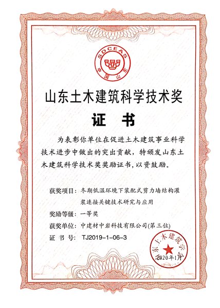 泉源: 宣布时间:2020-05-222020年1月,,,,,,,中岩科技科研项目《冬期低温情形下装配式剪力墙结构灌浆毗连要害手艺研究与应用》荣获山东土木匠程学会科技前进一等奖。。。。。