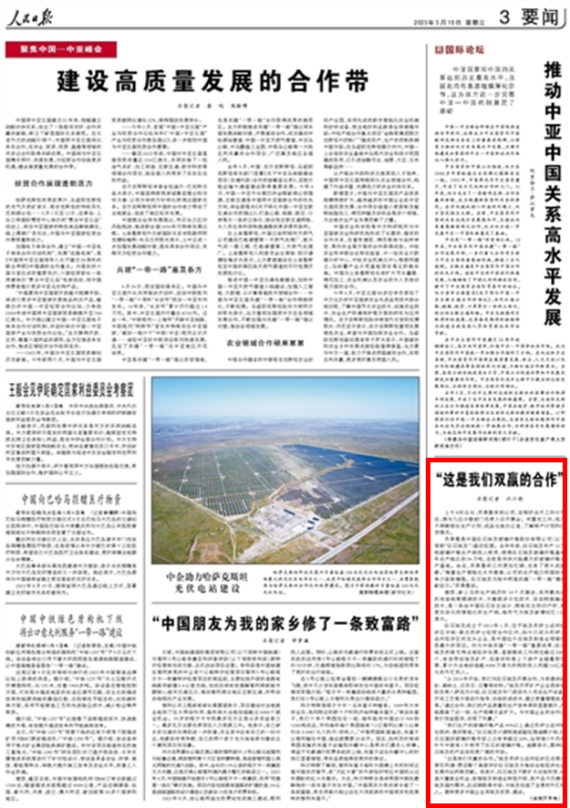 5月10日,,,,,人民日报要闻版刊登文章《这是我们双赢的相助》,,,,,报道集团所属巨石埃及建成非洲大陆最大的玻璃纤维生产基地,,,,,为中埃两国共建“一带一起”增添新动力。。。。。。现将全文内容分享如下: