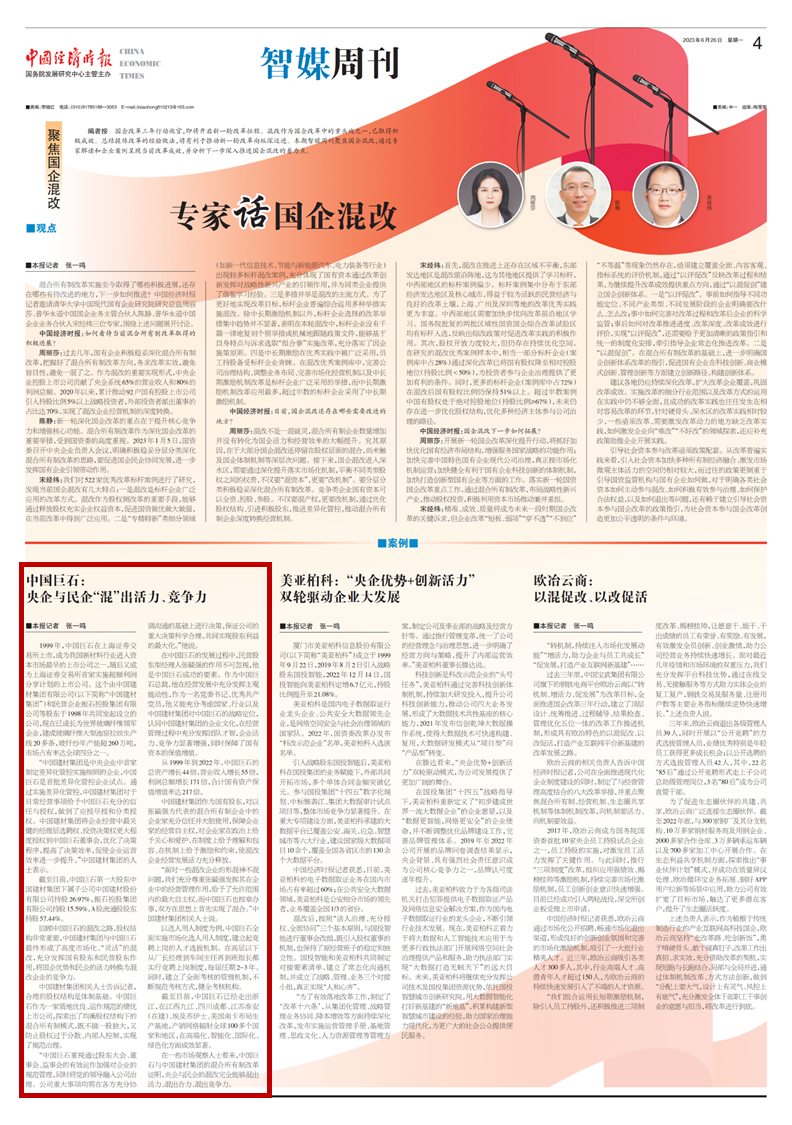 泉源:中国经济时报、中国巨石 宣布时间:2023-07-036月26日,,,,,,,,《中国经济时报》“智媒周刊”聚焦国企混改,,,,,,,,通过专家解读和企业案例泛起目今刷新效果,,,,,,,,并剖析下一步深入推进国企混改的着力点,,,,,,,,重点报道了中国巨石将国企优势和民企的活力转换为混改企业的竞争力。。。。。。。。小料现将内容分享给各人。。。。。。。。
