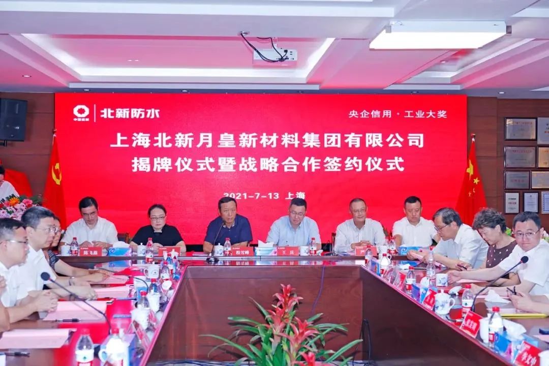 克日, ,,, ,北新月皇揭牌暨战略相助签约仪式在上海举行, ,,, ,标记着北新月皇完全融入北新系统。。。 。。。北新月皇将定位于“防水质料、塑胶跑道、地坪质料”三大主营营业, ,,, ,进一步增强和牢靠战略同伴关系, ,,, ,以客户为中心推进全产品、全营业谋划, ,,, ,起劲建设长三角地区防水行业领军企业、天下地坪行业和塑胶跑道行业的领军企业。。。 。。。