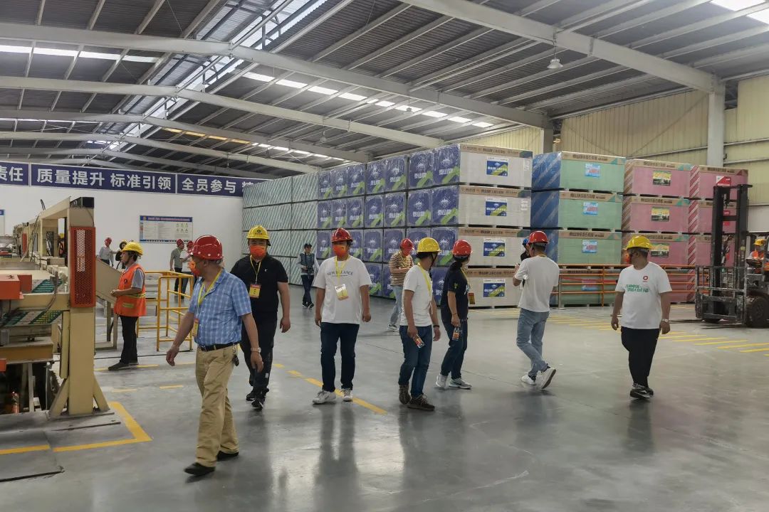 泰山石膏重庆公司特邀重庆市江津区综合保税区、生态情形局、珞璜镇顺江社区住民委员会,,,,,,,重庆市墙体质料工业行业协会及重庆区域公司经销商等旅行重庆公司石膏板生产现场,,,,,,,为企业与公众之间建设了相同交流的平台,,,,,,,展现了泰山石膏优异的生产治理秩序和绿色生长效果。。。。。。
