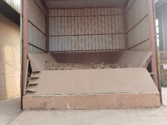 以前砂岩进厂后堆放在堆棚中,,,,,,,为增添存储量,,,,,,,需要装载机实时铲装堆高,,,,,,,在使用时,,,,,,,又需要装载机铲装至装卸口,,,,,,,事情量很是大。。。。。。厥后使用替换下的皮带机传动部分,,,,,,,只采购部分角铁、托辊,,,,,,,员工自己制作皮带机架,,,,,,,从出辅材均化堆场皮带机头部增添一条砂岩转运皮带,,,,,,,节约装备投资30万元,,,,,,,实现了砂岩入厂时直接卸车进辅材堆场举行均化贮存,,,,,,,用自制取料机取代铲车进料,,,,,,,既提高了砂岩配料的稳固性,,,,,,,又降低了50%的装载机事情量,,,,,,,年节约柴油约40吨,,,,,,,节约用度约30万元。。。。。。