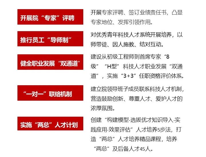 秉持“院士、专家、工程师、工匠” 四层级人才作育思绪 召开人才事情聚会 宣布“人才激励十条” 强化科技人才步队建设 一连健全中恒久激励系统 刷新效果荣获 国有企业深化刷新实践优异案例一等奖 天下企业文化优异效果 天下企业文化建设最佳实践企业 天下企业治理现代化立异效果二等奖 行业、省级企业治理现代化立异效果一等奖等声誉 南京玻纤院人才事情聚会 01. 重视科技人才职业通道建设 南京玻纤院“专家”选聘评审会 南京玻纤院“两总”及后备人才培训班 02. 推动工业工人步队建设刷新 打造“双师型”人才步队 建设江苏玻纤工业工匠学院 劳模(工匠)立异事情室同盟 主理全省玻纤及制品磨练工 职业手艺竞赛 作育院手艺人才529名 “双师型”人才26名 获天下手艺能手2人 天下6686体育 - 流畅首播全球篮球足球热门赛事工匠1人 天下纺织大工匠1人 江苏省五一劳动奖章4人 其他声誉奖项近20人 阶段效果 在《工人日报》《新华日报》 《学习强国》媒体报道 南京玻纤院“培—鉴—竞—用”手艺型人才治理系统 共建建设江苏玻纤工业工匠学院 “江苏工匠”岗位练兵及玻纤及制品磨练工职业手艺竞赛 03. 优化科技人才薪酬激励机制 重视科技人才激励系统建设 强化正向激励 引发内生涯力 推动落实 重大项目薪酬总额单列激励 建设实验 科技类专项奖励 形成3大类、12项激励步伐 为内容的多样化特色激励系统 南京玻纤院差别化薪酬治理系统 南京玻纤院薪酬总额管控动态治理机制 南京玻纤院试点重大项目薪酬总额单列 释放立异活力 生长再立异高 “十四五”以来 南京玻纤院通过国企刷新行动和立异生长行动 企业泛起新气象、迸发新活力 综合实力和谋划效益 一直迈上新台阶 在国资委2022年度 科改企业审核中获评优异 刷新再启程 踔厉高昂向前 马不停蹄未下鞍 撸起袖子加油干 南京玻纤院将以习近平新时代 中国特色社会主义头脑为指导 深入贯彻落实党的二十大精神 深入开展国企刷新深化提升行动 以科转业动为契机 围绕“四个面向” 突出战略重点 以刷新促生长,,,,,以立异求实效 切实强化焦点竞争力和焦点功效建设 一直塑造生长新动能新优势 推动高质量生长!