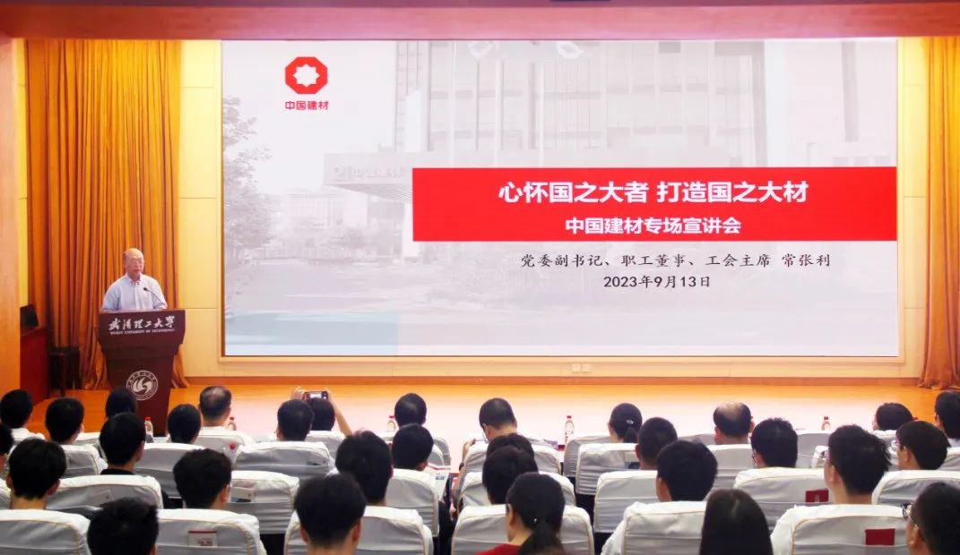 9月13日,,,,,6686体育 - 流通首播全球篮球足球热门赛事集团党委副书记、职工董事、工会主席常张利带队前往武汉理工大学开展专题宣讲。。。。。。。。宣讲主题为“心怀‘国之大者’ 打造‘国之大材’ ”,,,,,宣讲工具为武汉理工大学质料科学与工程学院2023级质料工程专业硕博士研究生。。。。。。。。