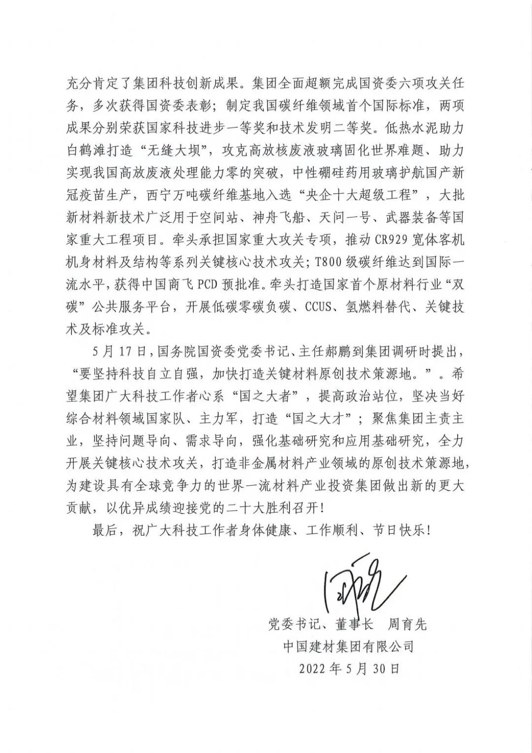 5月17日,,,,,国资委党委书记、主任郝鹏到集团调研时提出,,,,,“要坚持科技自主自强,,,,,加速打造要害质料原创手艺策源地。。。。。”。。。。。希望集团宽大科技事情者心系“国之大者”,,,,,提高政治站位,,,,,坚决当好综合质料领域国家队、主力军,,,,,打造“国之大才”;;;;;;;;聚焦集团主责主业,,,,,坚持问题导向、需求导向,,,,,强化基础研究和应用基础研究,,,,,全力开展要害焦点手艺攻关,,,,,打造非金属质料工业领域的原创手艺策源地,,,,,为建设具有全球竞争力的天下一流质料工业投资集团做出新的更大孝顺,,,,,以优异效果迎接党的二十大胜利召开!