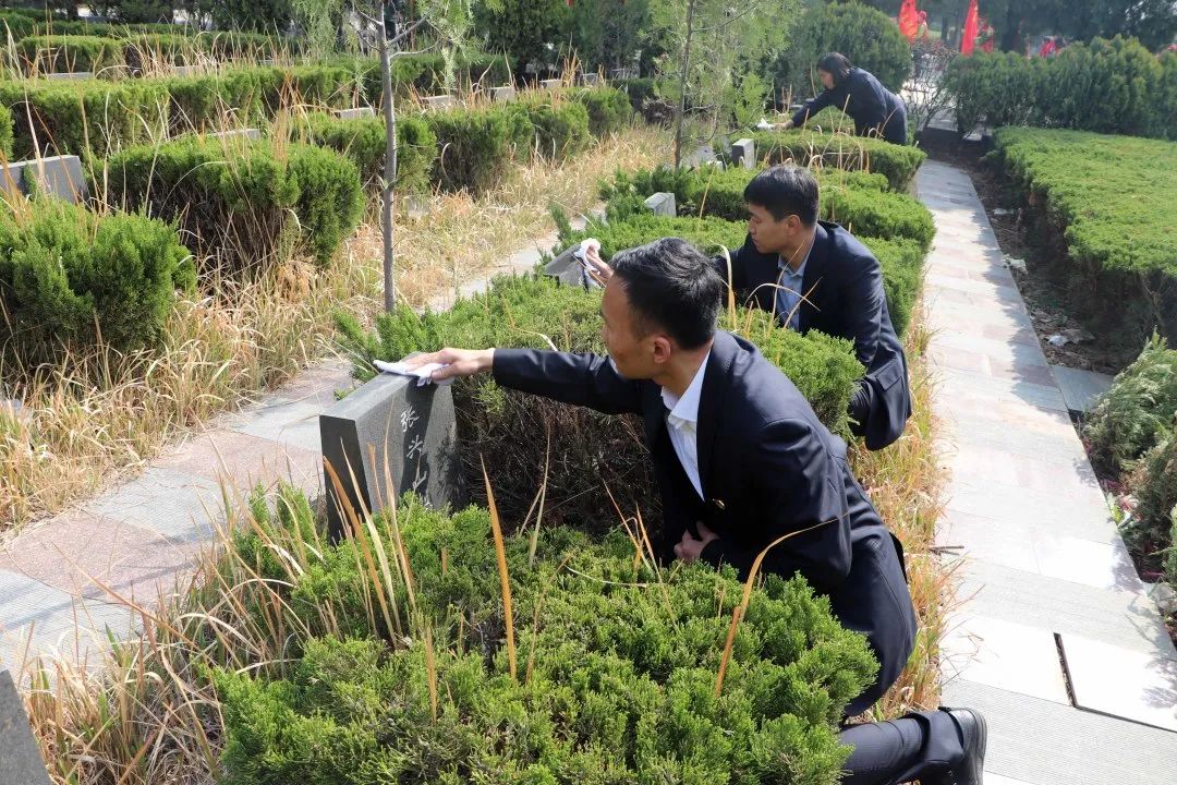 天山筑友公司组织干部职工开展祭扫运动,,,,,全体职员庄重肃穆排队于义士墓碑前,,,,,向长眠于此的革命义士整体默哀,,,,,三鞠躬,,,,,并依次献花,,,,,思念先烈、寄托悲哀。。。。。。