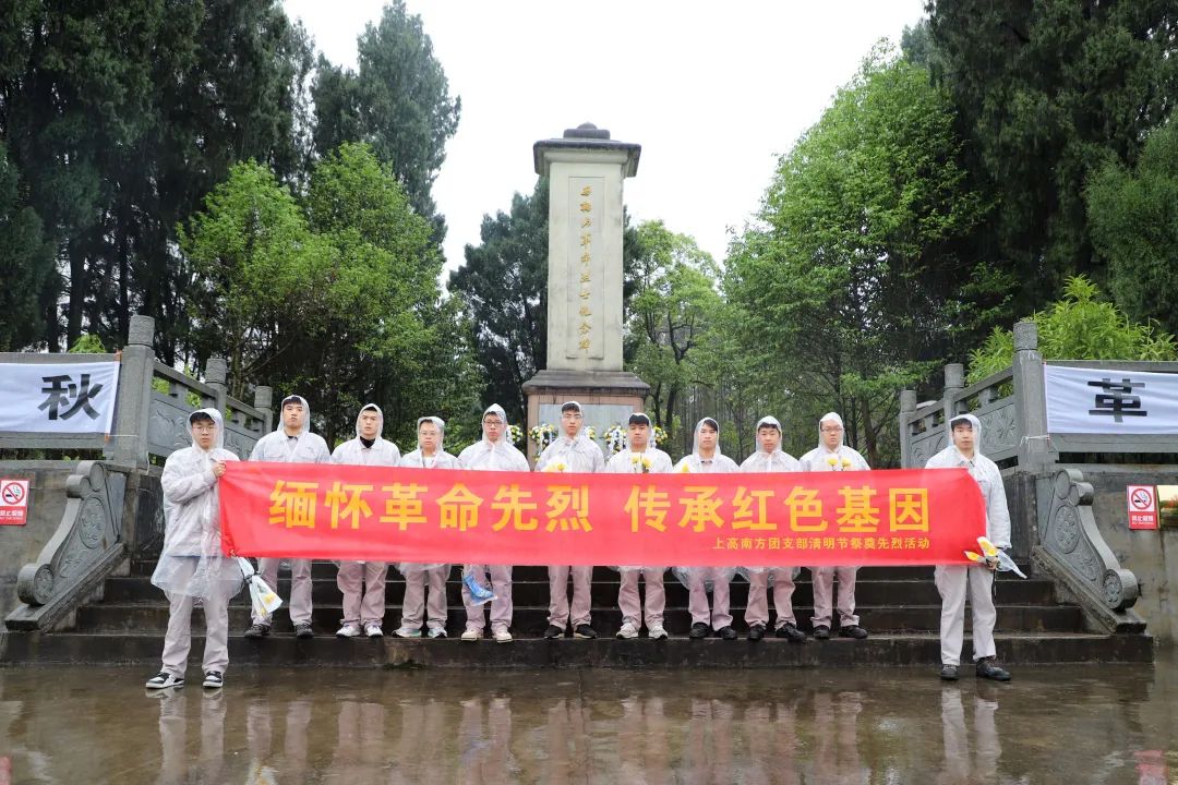 上高南方组织团员青年赴田心镇马鞍山革命义士纪念陵园开展祭祀先烈运动。。。。。。各人庄重肃立在义士纪念碑前,,,,,整体向义士纪念碑三鞠躬,,,,,寄托对先烈的无限悲哀和高尚敬意。。。。。。