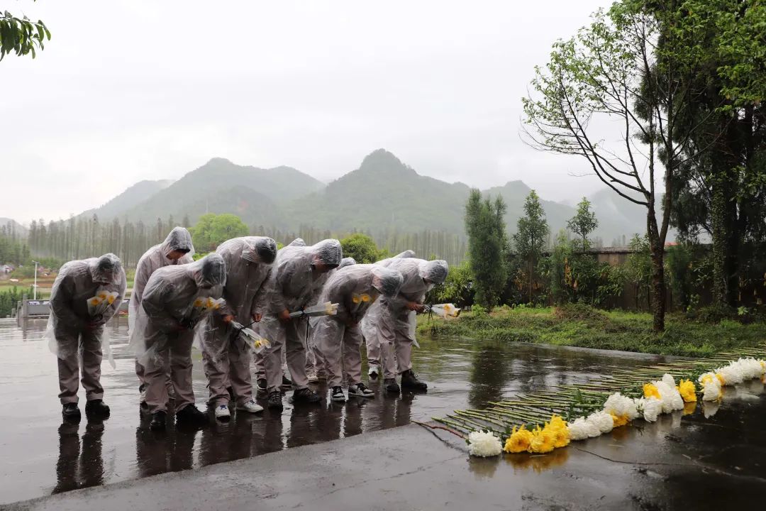 东乡上陈新质料在抚州市义士陵园开展清明祭扫运动。。。。。。在纪念碑前,,,,,全体职员冒雨庄重肃立,,,,,向为革命事业英勇献身的义士默哀、鞠躬、献花,,,,,寄托对革命义士的深切追悼和无尽的敬重之情。。。。。。