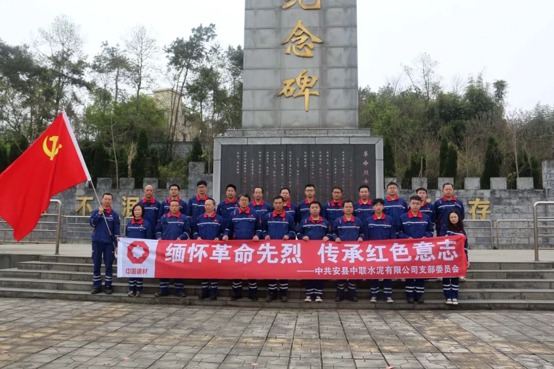 四川安县中联在绵阳市安州区义士陵园组织开展“思念革命先烈 传承红色意志”主题党日运动。。。。。。在庄重肃穆的革命义士纪念碑前,,,,,全体党员整齐列阵向纪念碑三鞠躬,,,,,为义士敬献鲜花,,,,,表达对革命义士高尚的敬意和深深的纪念。。。。。。