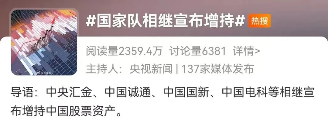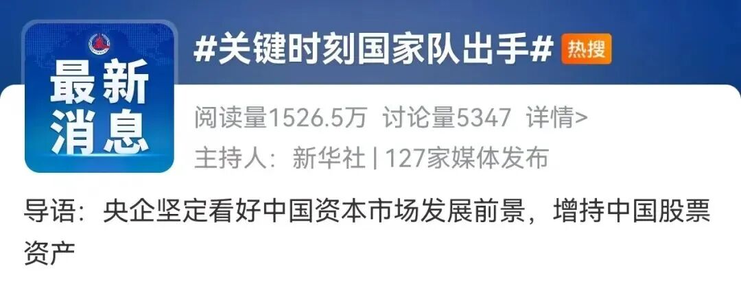 2、“央企十大热搜” #要害时刻国家队脱手# #国家队相继宣布增持#
