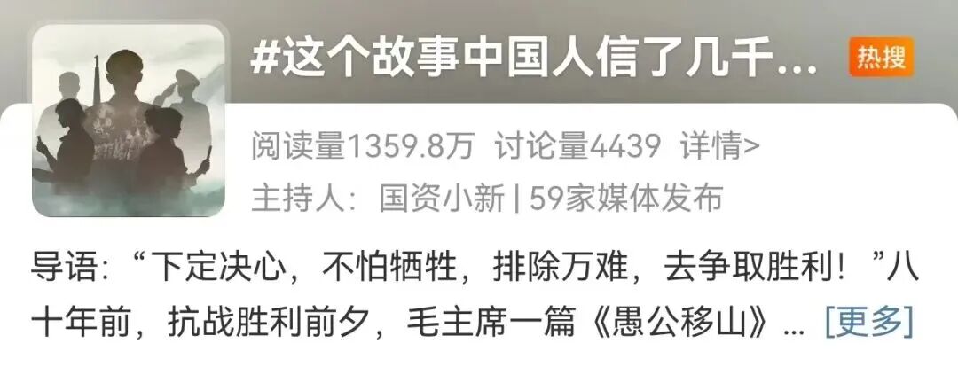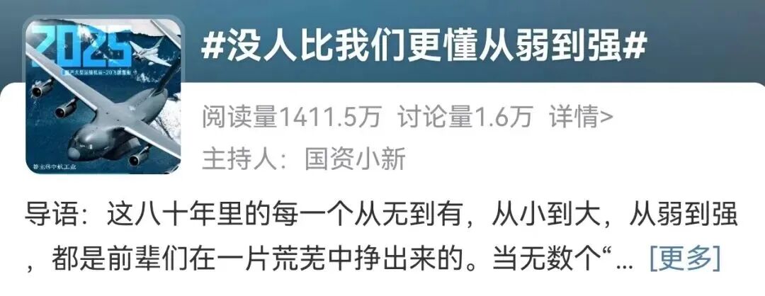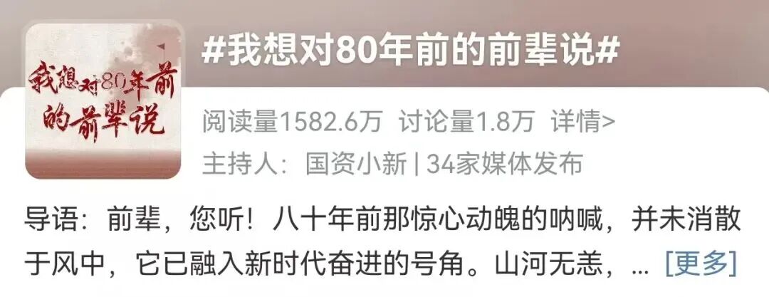 3、“央企十大热搜” #我想对八十年前的先进说# #没人比我们更懂从弱到强# #这个故事中国人信了几千年#