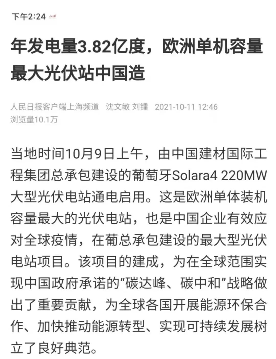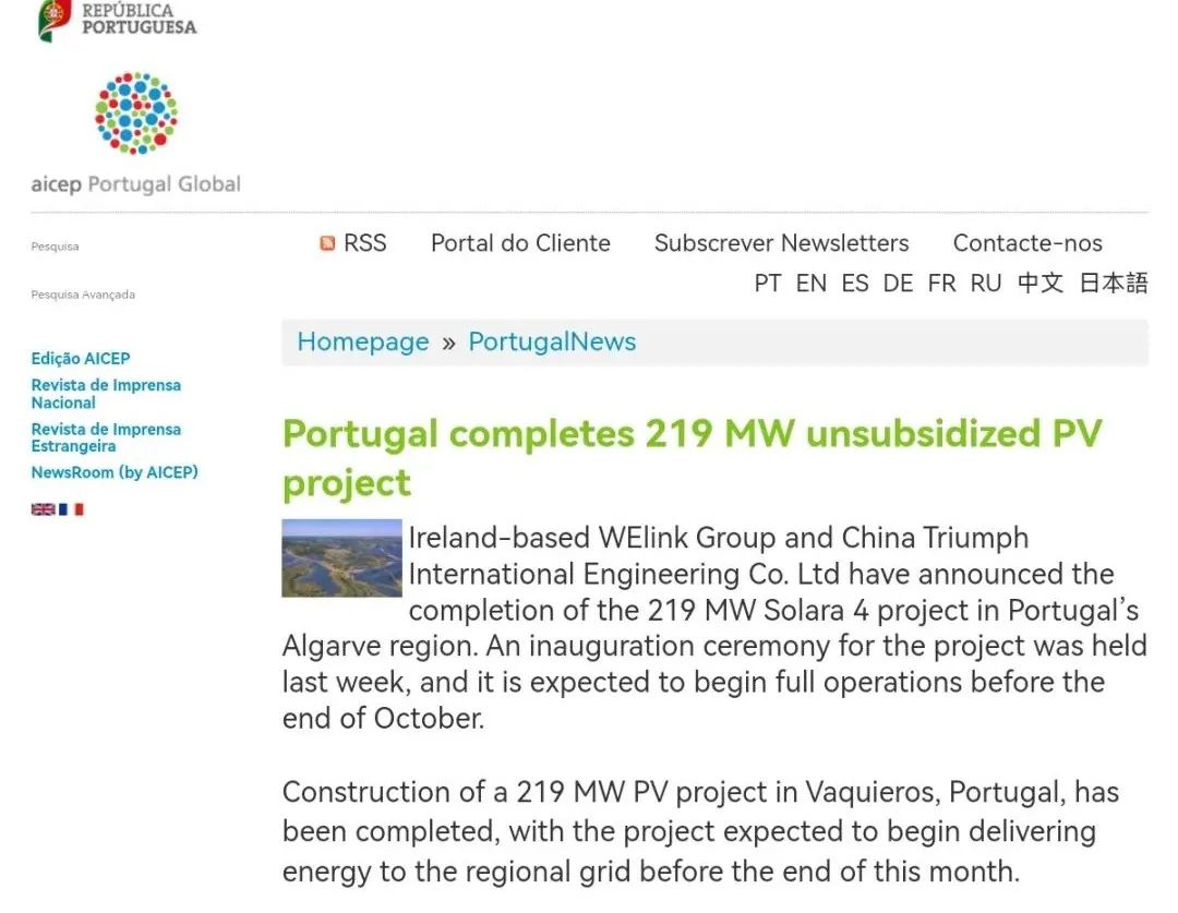 外地时间10月9日上午,,,,,,,6686体育 - 流通首播全球篮球足球热门赛事国际工程集团有限公司总承包建设的葡萄牙Solara4 220MW大型光伏电站在位于葡萄牙南部的项目现场准期举行通电仪式,,,,,,,这是欧洲单体装机容量最大的光伏电站,,,,,,,也是中国企业有用应对全球疫情、在葡总承包建设的最大型光伏电站项目。。。。。该项目的建成,,,,,,,为在全球规模实现中国政府允许的“碳达峰、碳中和”战略做出了主要孝顺,,,,,,,为全球各国开展能源环保相助、加速推动能源转型、实现可一连生长树立了优异规范。。。。。